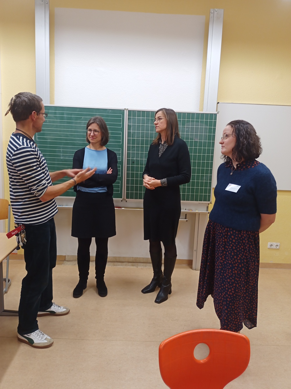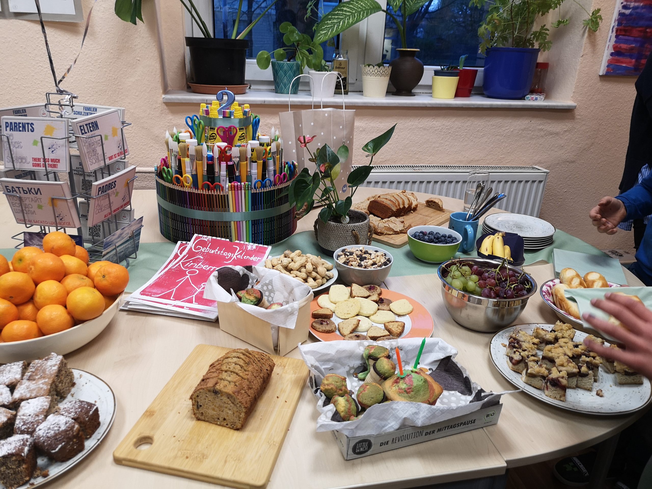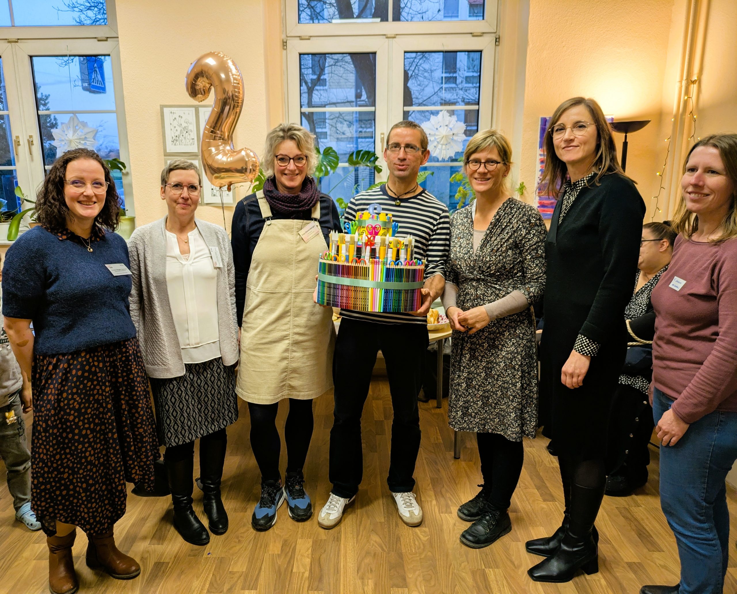 Zu den Gratulant/-innen gehörte auch Vicki Felthaus, Bürgermeisterin für Jugend, Schule und Demokratie. Sie überreichte eine liebevoll gestaltete Geburtstagstorte und betonte die Bedeutung des Familienschulzentrums. „Mit unseren Familienschulzentren bündeln wir präventive Angebote und stärken das Miteinander von Eltern, Kindern und Schule – damit jede Familie die Unterstützung erhält, die sie braucht, bevor Probleme entstehen“, so Vicki Felthaus. Ebenfalls zu Besuch war die Wübben Stiftung Bildung, die das Projekt seit seinem Bestehen begleitet und unterstützt. Der Austausch zwischen allen Beteiligten war geprägt von Offenheit, Wertschätzung und dem gemeinsamen Ziel, Kindern und Familien bestmögliche Entwicklungs- und Lernbedingungen zu bieten.